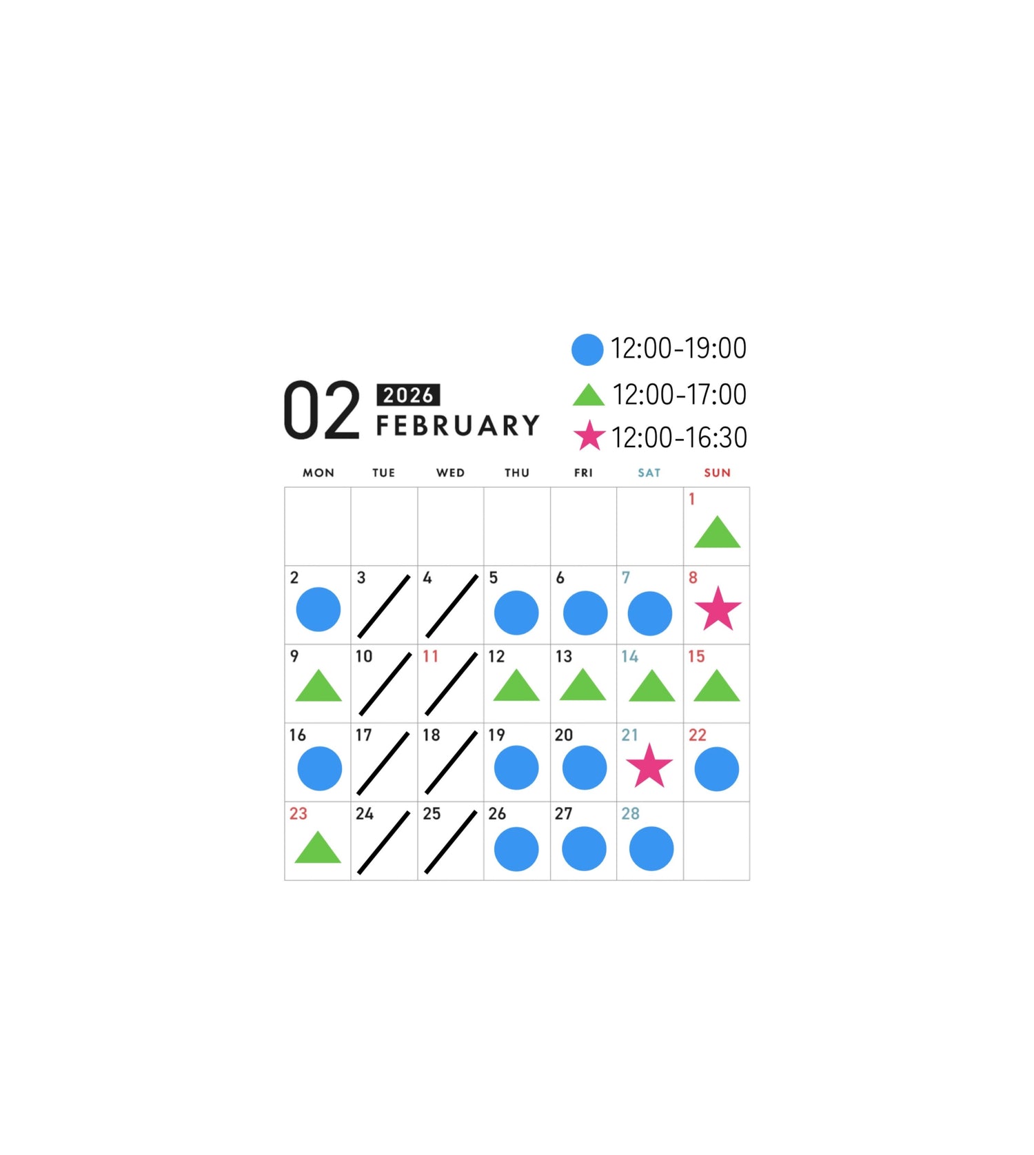 2月の営業日カレンダーです。