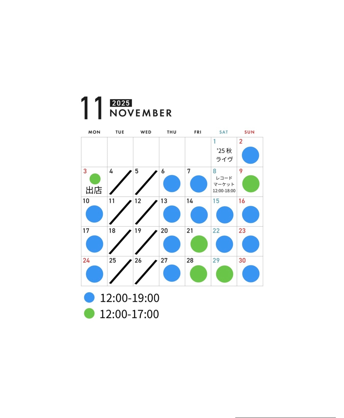 11/1は江本祐介さん、Hi how are you?さん、Summer Eyeさんのライブ「‘25秋」です。この日は17時頃にイヴェントが終了しますので、以降は通常通り19時まで営業してます!