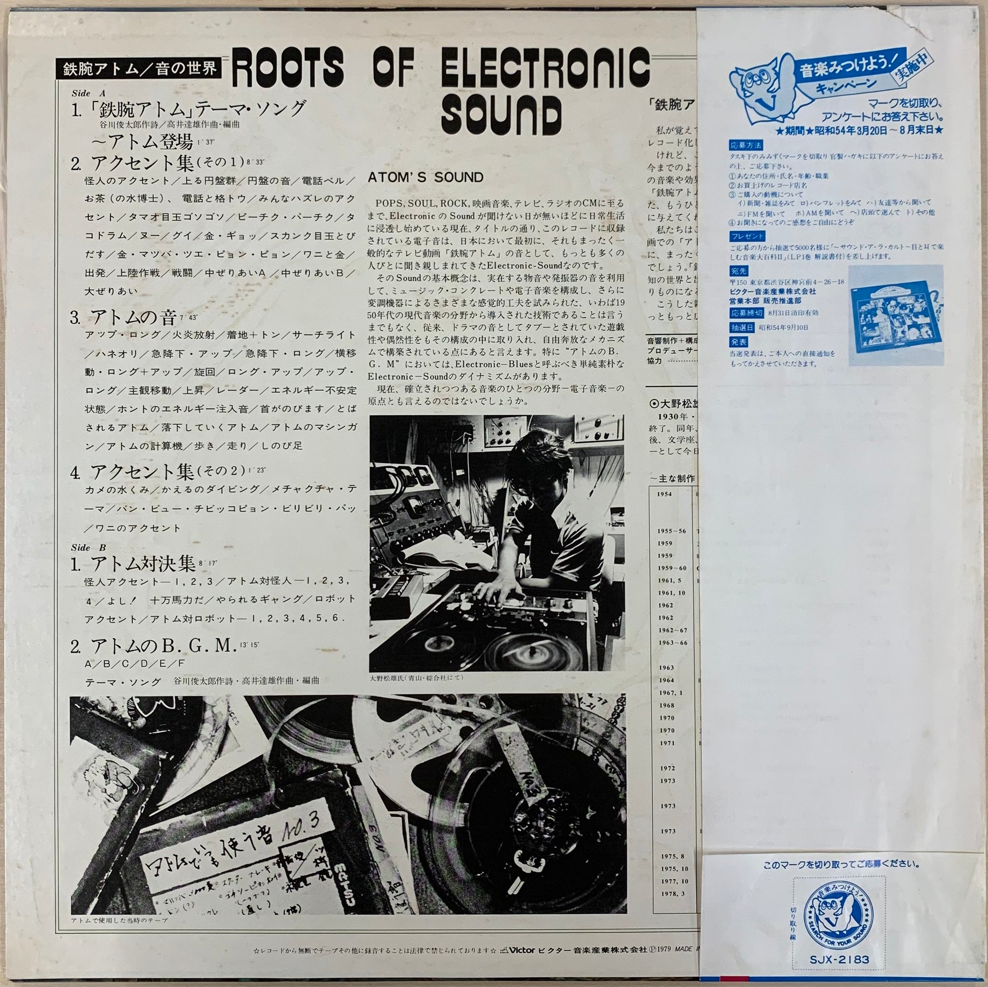 日本電子音楽の先駆的存在、大野松雄による鉄腕アトムの効果音をまとめた1枚。アトムの歩行音などあらゆる効果音を電子音とコンクレートによって制作していたセンスとユーモアには本当に脱帽です。効果音を並べて収録していますが、心から楽しめるシンセ / ミュージックコンクレート・アルバムです。一家に一枚な作品です!