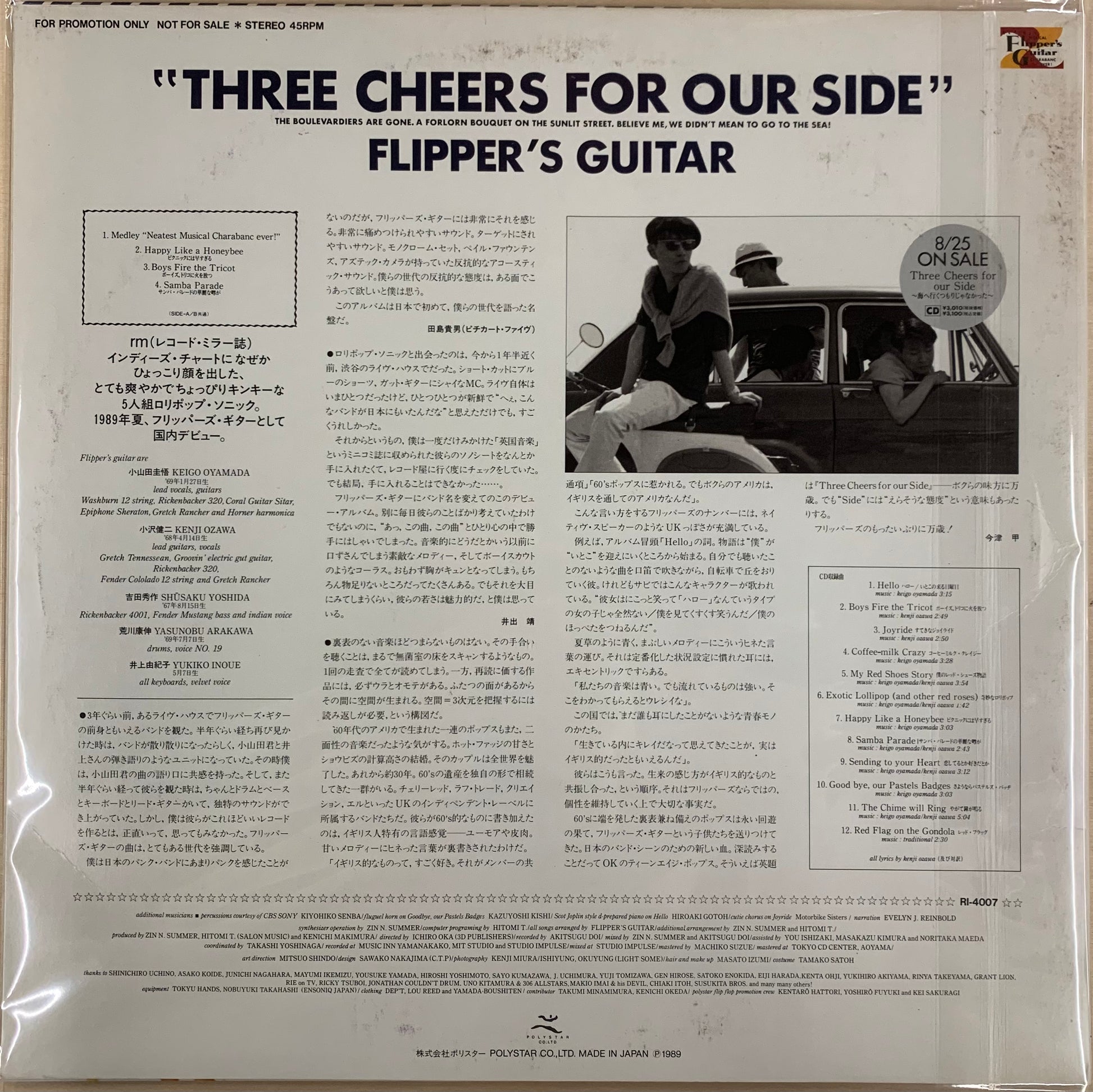 Flipper's Guitarの1stアルバム『Three Cheers For Our Side』のプロモーション用に制作された45回転仕様のサンプラー的アルバム。大変珍しい1枚です。